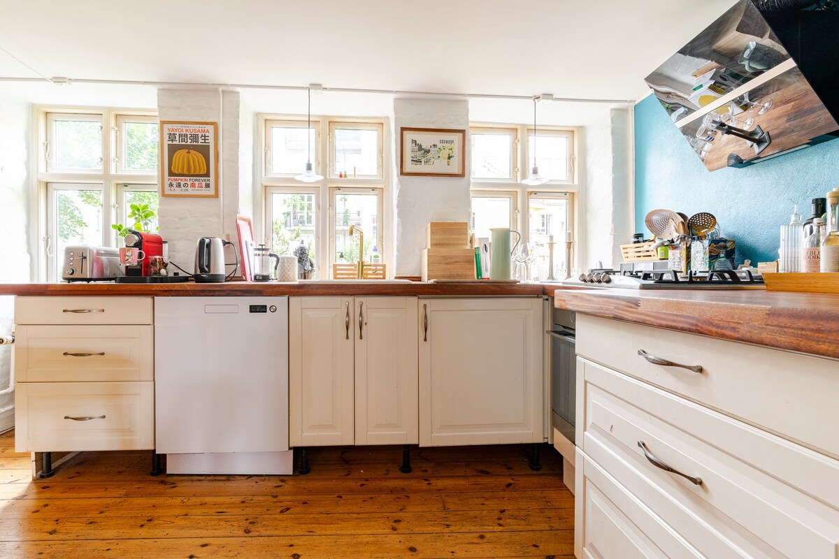 Apartamento elegante, tranquilo y limpio en Christianshavn, en una calle tranquila a poca distancia a pie de la mayoría de los lugares de interés y del centro de la ciudad de Copenhague. A pocos pasos de la puerta principal, los canales ofrecen la oportunidad de nadar, alquilar un barco, llevar la cena a uno de los bancos/mesas o simplemente pasar el rato y experimentar el encantador y auténtico barrio de Christianshavn con sus bares, restaurantes y tiendas. En Christianshavn Torv, a la vuelta de la esquina, el metro te lleva al aeropuerto en 20 minutos.