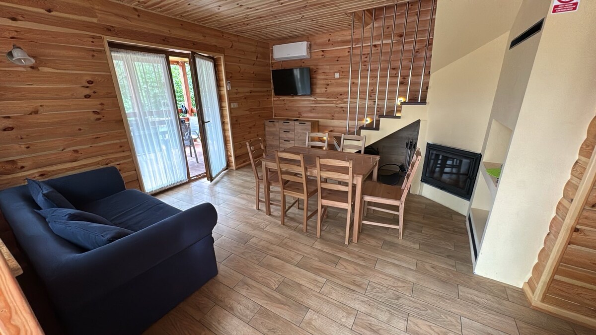 Presento una casa en alquiler con BALI y sauna. Las casas están situadas en el embalse de Chańcza, en Życiny, en una zona tranquila. En la zona hay varias instalaciones: un parque infantil con tobogán, arenero y carrusel. En la casa [espacio para 6 personas] Arriba - habitación con cama doble y sofá cama. - habitación con 3 camas individuales Abajo - sofá cama - TV - baño con ducha, lavadora y secadora. - cocina americana con equipamiento - horno, placa, lavavajillas, hervidor.