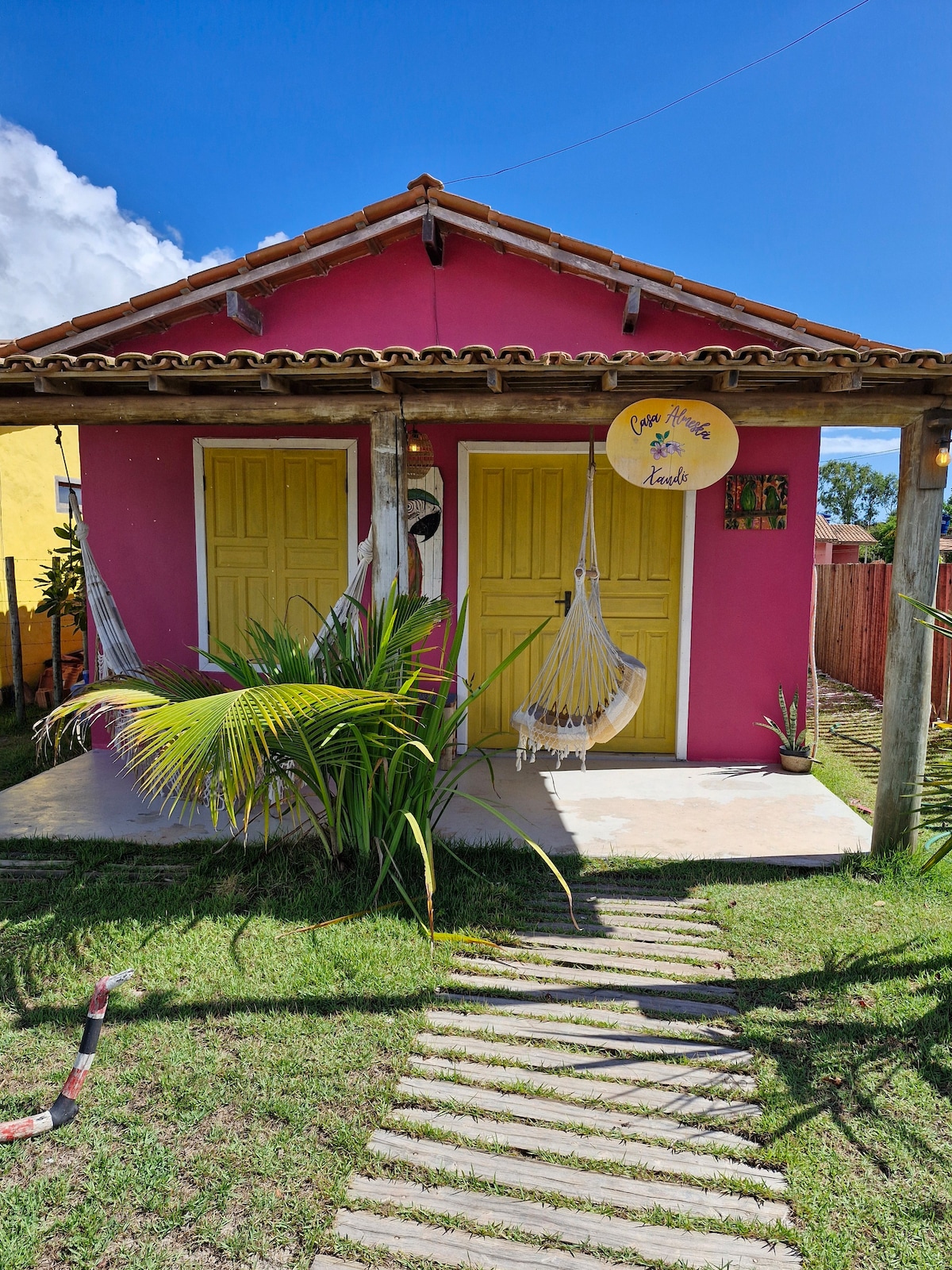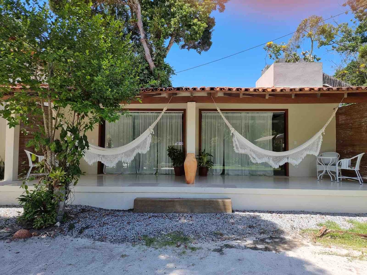 Chalet independiente de 35 metros cuadrados, cama king size, aire acondicionado, baño espacioso, Smart TV, WI-FI de fibra óptica, cocina al aire libre, compartida entre los 2 chalets de la Casa (con armarios separados y utensilios de cocina para cada chalet), totalmente equipada, balcón con hamaca, limpieza diaria de habitaciones y áreas comunes. A 200 metros de las playas de Araçaipe y Pescadores