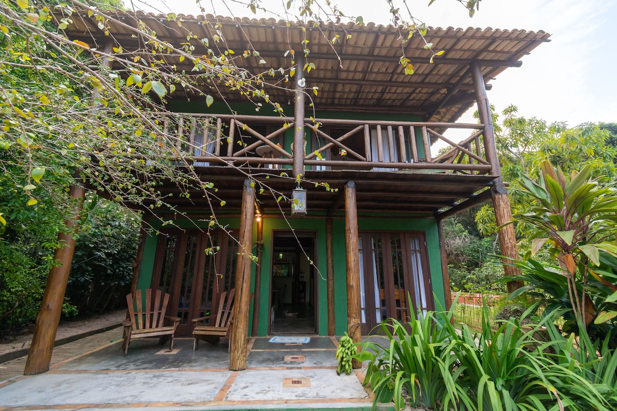 Bangalô Hari Om ¡La experiencia de vivir en el paraíso! Bungalow entero con dormitorio, baño, sala de estar y cocina integrada. Balcón con hamaca y vistas al bosque verde preservado. Estamos a 700 metros, 5 minutos en coche y 10 minutos a pie de la playa de Taipú de Fora, muy cerca de las piscinas naturales. ¡Un lugar en medio de la naturaleza para experimentar momentos de paz, tranquilidad y buena energía! ¡Aquí tu mascota también es muy bienvenida! La vegetación del jardín sufre pequeños cambios a lo largo de las estaciones.