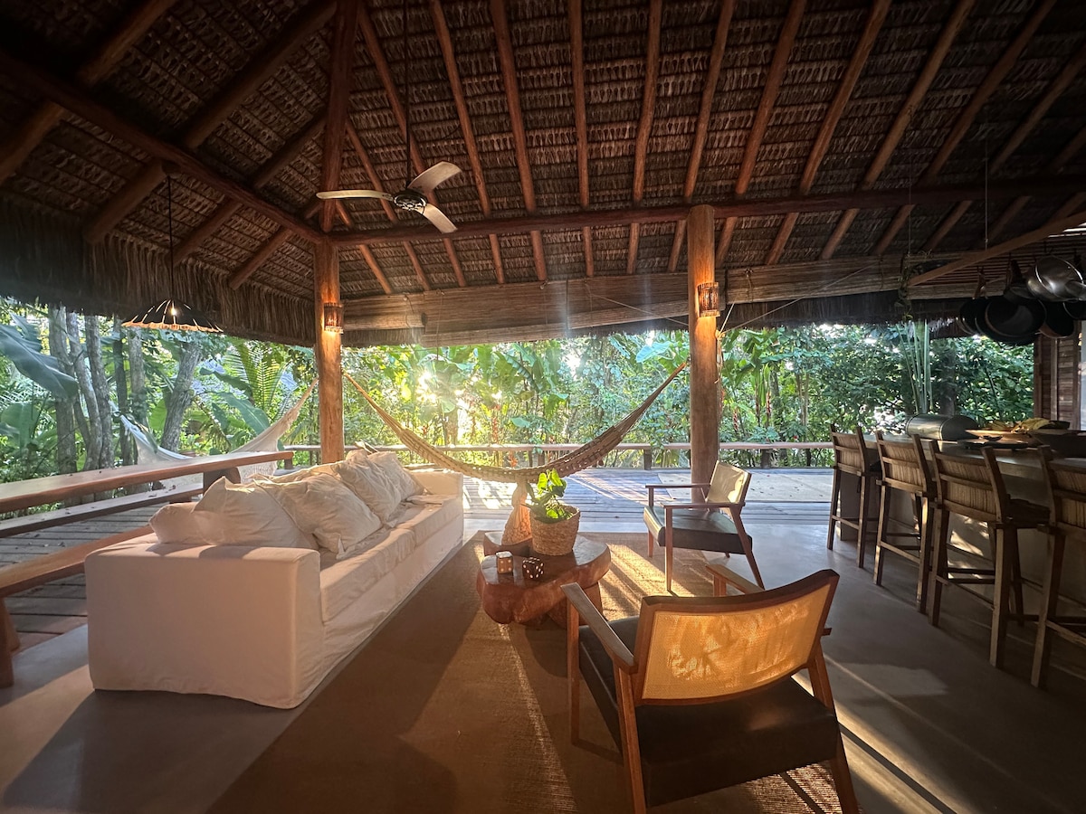 Bungalow forestal sostenible con vistas al mar cerca de Morro de São Paulo Escápate a este refugio único y tranquilo ubicado en la selva tropical de Gamboa. Se accede a este elegante y distintivo bungalow a través de un camino elevado de madera que serpentea a través del bosque. Disfruta del desayuno servido en tu bungalow. Sumérgete en la naturaleza que te rodea. Perfecto para aquellos que buscan relajación y un toque de aventura.