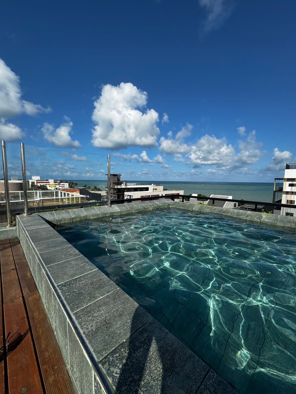 Piso en el punto más oriental de las Américas, frente al mar, jacuzzi privado, aire acondicionado central, recepción 24/7, checkin/checkout fácil, extrema seguridad para los huéspedes con sistema de huellas digitales de ambiente a ambiente, gimnasio, lavadora/secadora, garaje rotativo, sala de reuniones y estudio, azotea impecable con 2 gourmet, jacuzzis, piscina con borde infinito, una vista divina y tranquila. Asegúrese de vivir la mejor experiencia en el más alto nivel de JPA.