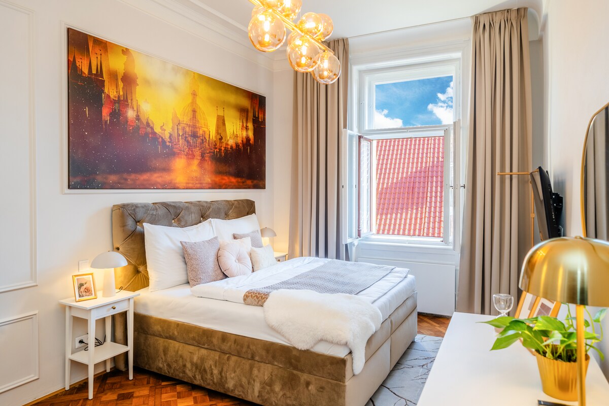 Comienza el día en una amplia terraza con vistas a un patio tranquilo, un remanso de paz y privacidad en el corazón de Praga. Cocina con facilidad en una cocina totalmente equipada y relájate en un espacio luminoso y acogedor con toques suaves. A solo 3 minutos de la plaza de Wenceslas y a 10 del casco antiguo: explora la ciudad a pie. Perfecto para parejas o viajeros solitarios que buscan tranquilidad y comodidad. Aparcamiento subterráneo disponible bajo petición - GRATIS ¡Reserva hoy mismo tu retiro tranquilo y elegante en Praga! ✅