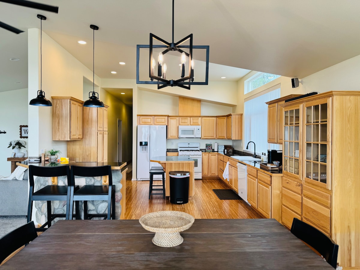 Esta nueva casa de campo moderna y personalizada se encuentra justo al lado del puerto deportivo de Kettle Falls. Pesca, senderismo, paseos en barco, deportes acuáticos, caza y explorar la belleza del lago Roosevelt y sus alrededores son solo algunas de las razones para venir a Kettle Falls. Esta casa con aire acondicionado es espaciosa, incluye carpintería personalizada, chimenea de gas, cocina bien equipada, lavandería, 3 dormitorios y 2 baños y medio. Acabados de alta calidad en todas partes. Hay mucho aparcamiento para barcos y remolques.