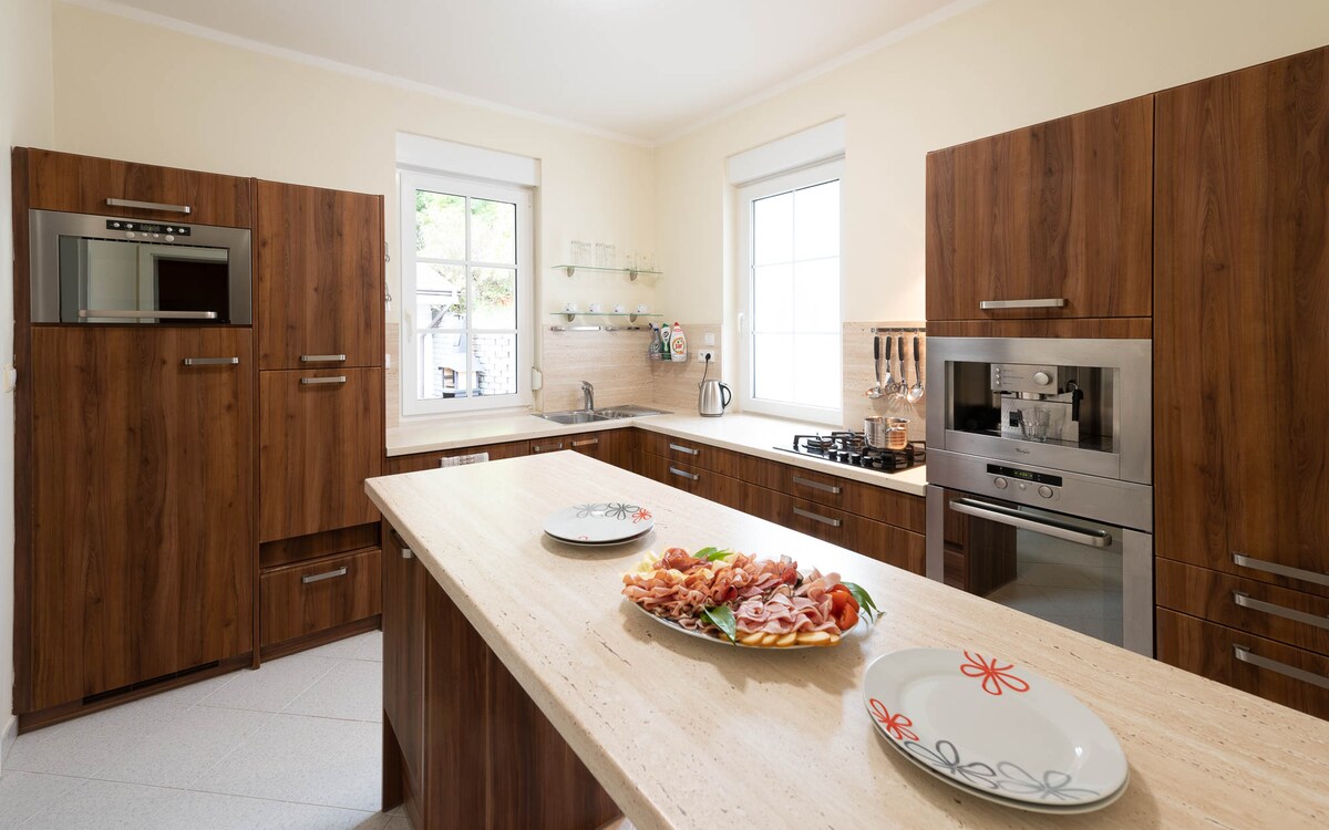 Después de la reconstrucción completa de la villa, se crearon 6 apartamentos hermosos y cómodos, que ofrecen lujosas comodidades, tecnología moderna y el máximo confort. Nuestros apartamentos incluyen un lujoso centro de bienestar y la posibilidad de alquilar una bodega. Para nuestros huéspedes, también tenemos una hermosa y relajante zona de estar justo en frente de los apartamentos.