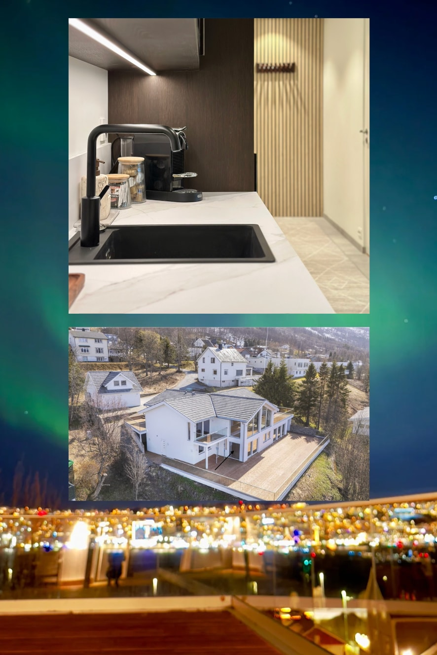 This house looks like a little cathedral, and lies only a five minutes walk from the centre of Tromsø. Large windows in the front gives a magnificent view of the city, the sea and the Mountains. The house was finished in 2019. We have choosen exclusive materials and design furniture. You’ll see that it’s made by heart. Helga, the host, lives in the house next door, and is readily available. This is the perfect place to stay in Tromsø. Welcome!