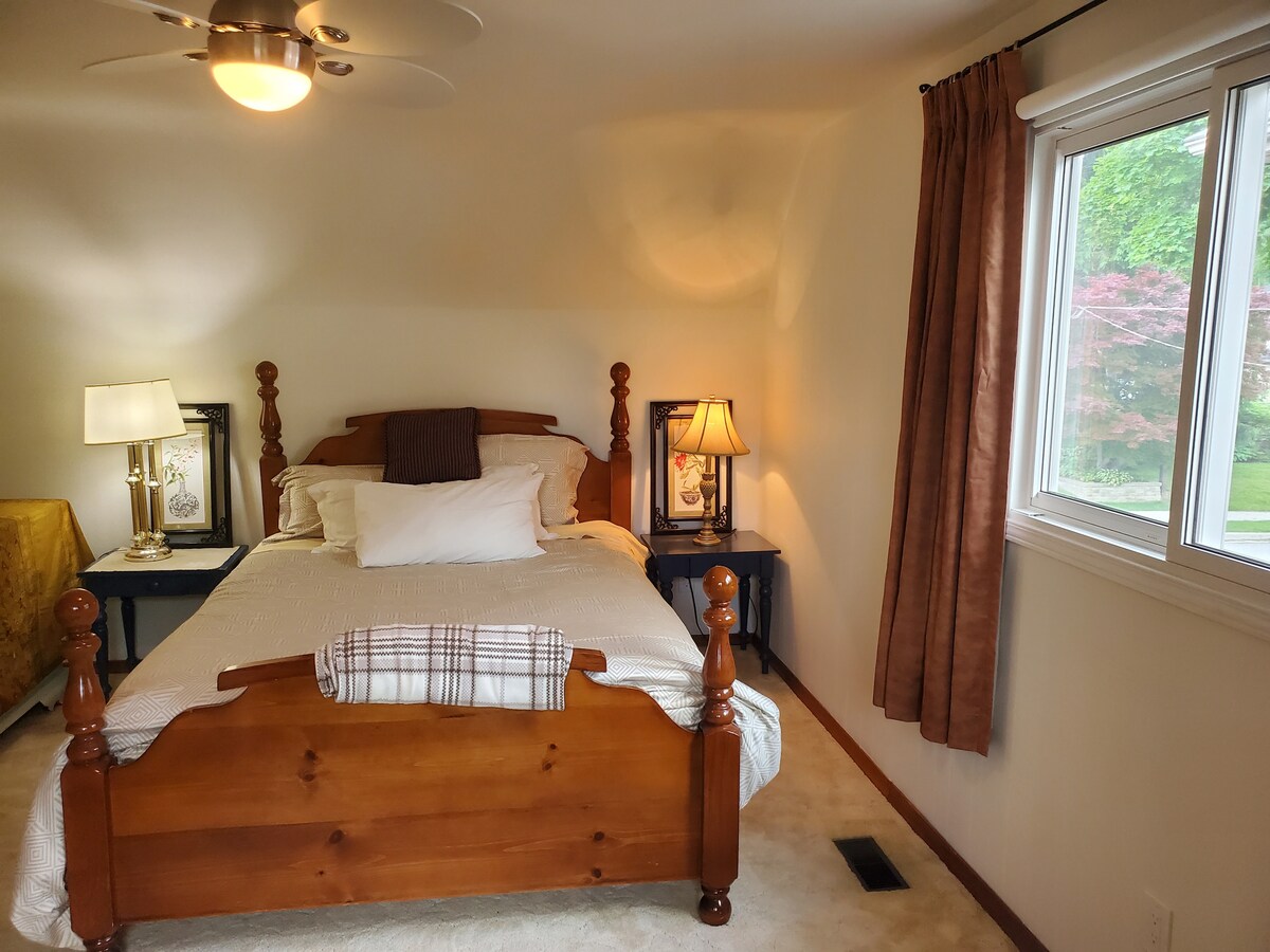 Excelentes vistas al lago y al nuevo teatro desde los balcones de 2 dormitorios con cama tamaño king y baño privado en una casa nueva (2016). El anfitrión, experto en festivales, ofrece total privacidad. Avon Vista Guest Suite es ideal para disfrutar del Festival de Stratford y de los parques florales junto al lago. Paseo panorámico de 5 minutos hasta el nuevo Teatro Tom Patterson. Fácil acceso a pie a todos los teatros y al centro de la ciudad. Cocina completa, gran mesa de comedor, TV de 50 pulgadas (cable completo), biblioteca teatral, jardines de rosas. El anfitrión paga el 13 % de los impuestos federales y el 4 % de los impuestos municipales.
