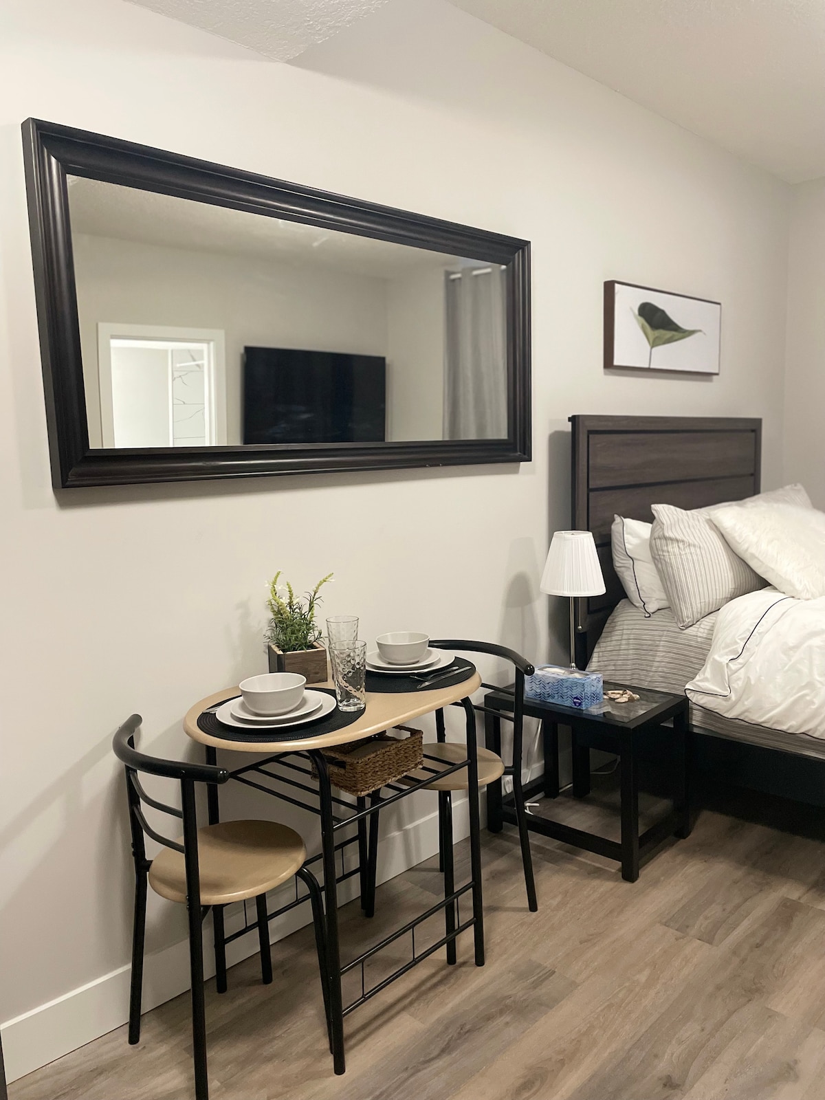 Looking for a modern and convenient home base for your family or small group in Edmonton? Our 2BR suite is the perfect choice. With a maximum occupancy of four, our suite is family-friendly and located just minutes from the University of Alberta and Southgate Mall. Inside, you'll find a stylish and comfortable space with two cozy bedrooms, a modern bathroom, and a fully equipped kitchen. Book your stay with us today and experience all the comfort and convenience of our modern 2BR suite.