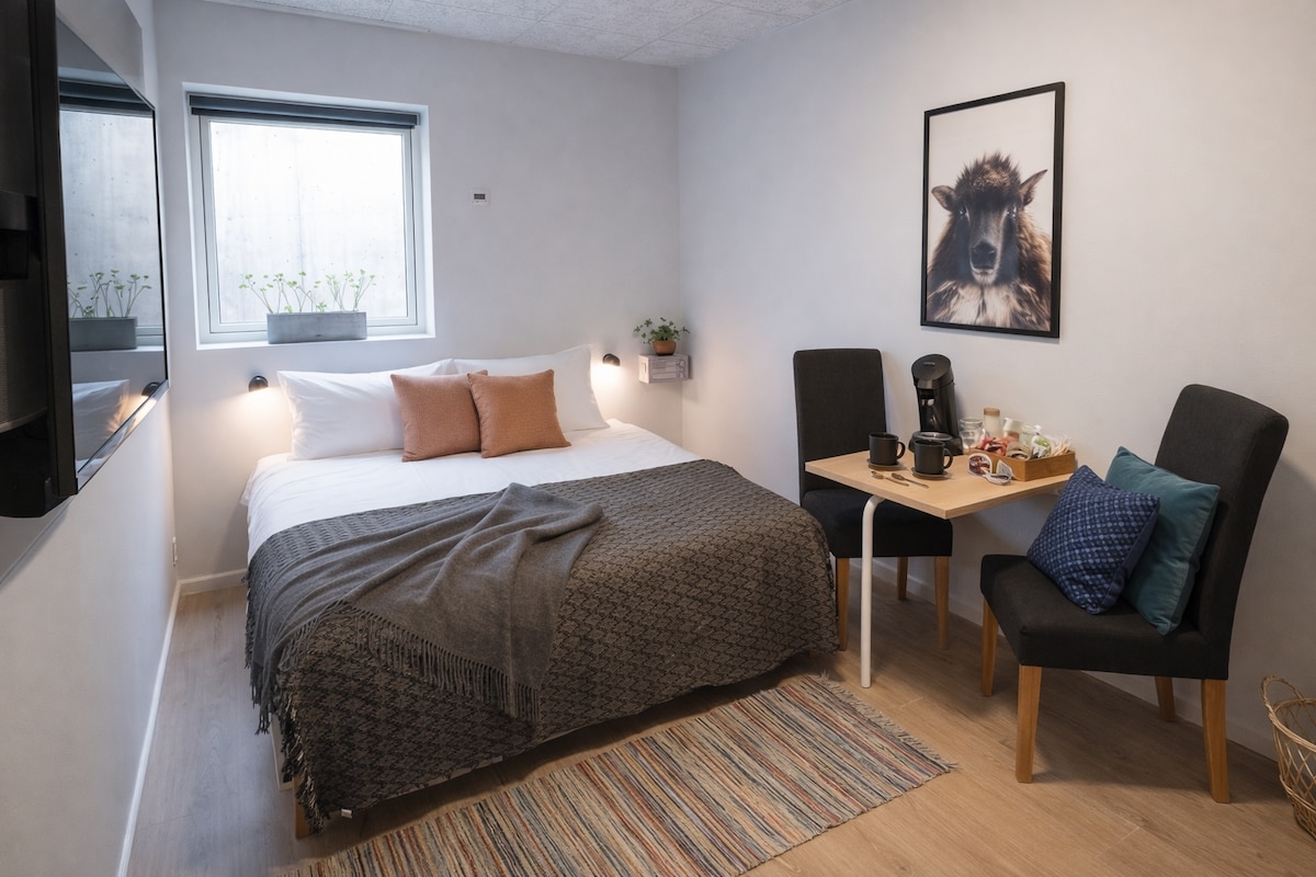 El apartamento es nuevo y está en el centro de Norðragøta. Cocina/sala de estar, dormitorio, aseo. A 3 minutos a pie de la tienda de comestibles y a 7 minutos a pie de la parada de autobús. Facilidades: Wifi gratuito, ducha, inodoro, TV inteligente, microondas, horno, tetera y cafetera. Acceso a lavadora y secadora.