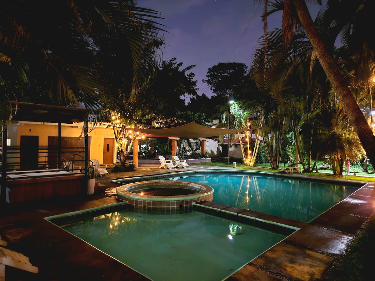 Disfruta de la piscina privada infinity con vistas al lago y volcán, y la encantadora playa ideal para bañarse justo frente a la casa. A diferencia de otros Airbnb aislados, La Casa Bonita del Lago está en San Pedro La Laguna, el pueblo más acogedor. En una zona residencial exclusiva, natural y tranquila, con tiendas, restaurantes, cafés cerca y a 5–7 min en tuktuk de muelles públicos. 600 m² de jardín, fogata al atardecer, WIFI de fibra óptica, espacio de trabajo y parking gratuito cerca.
