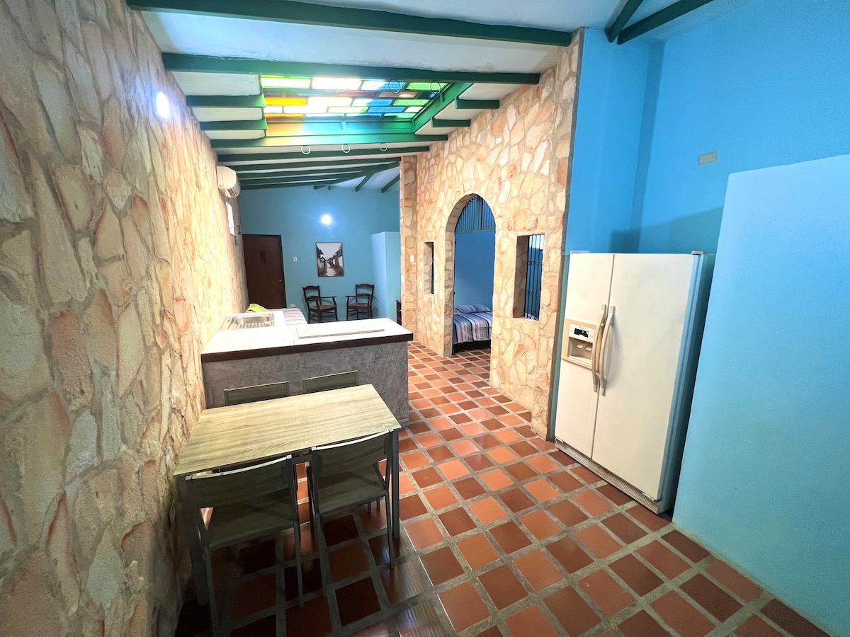 Relájate en nuestra hamaca artesanal del balcón, el rincón perfecto para sentir la brisa de Los Bordones. El diseño interior rinde homenaje a Cumaná: nuestras lámparas tejidas por artesanos locales con fibras naturales junto a formas en piedra arenisca zonal, crean una atmosfera cálida y única. Hemos fusionado el confort moderno con la tradición costera para que vivas una experiencia autentica frente al mar. Un refugio total con alma y estilo Caribeño, te espera!