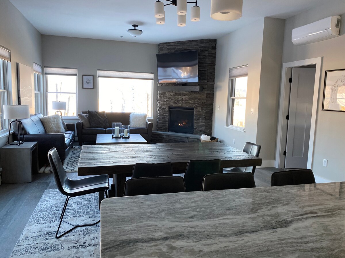 Ubicado en el lado oeste de Sugarloaf Mountain, este apartamento de 4 dormitorios cuenta con algunas de las vistas más increíbles disponibles. Ubicado justo al norte del campo de golf Sugarloaf, este refugio dejará a sus huéspedes sin aliento mientras contemplan las montañas Bigelow y Crocker. Esta propiedad incluye un balcón privado, televisores inteligentes en todas las habitaciones y acceso al servicio de transporte de esquí, al nuevo Bucksaw Express y al telesilla de West Mountain.