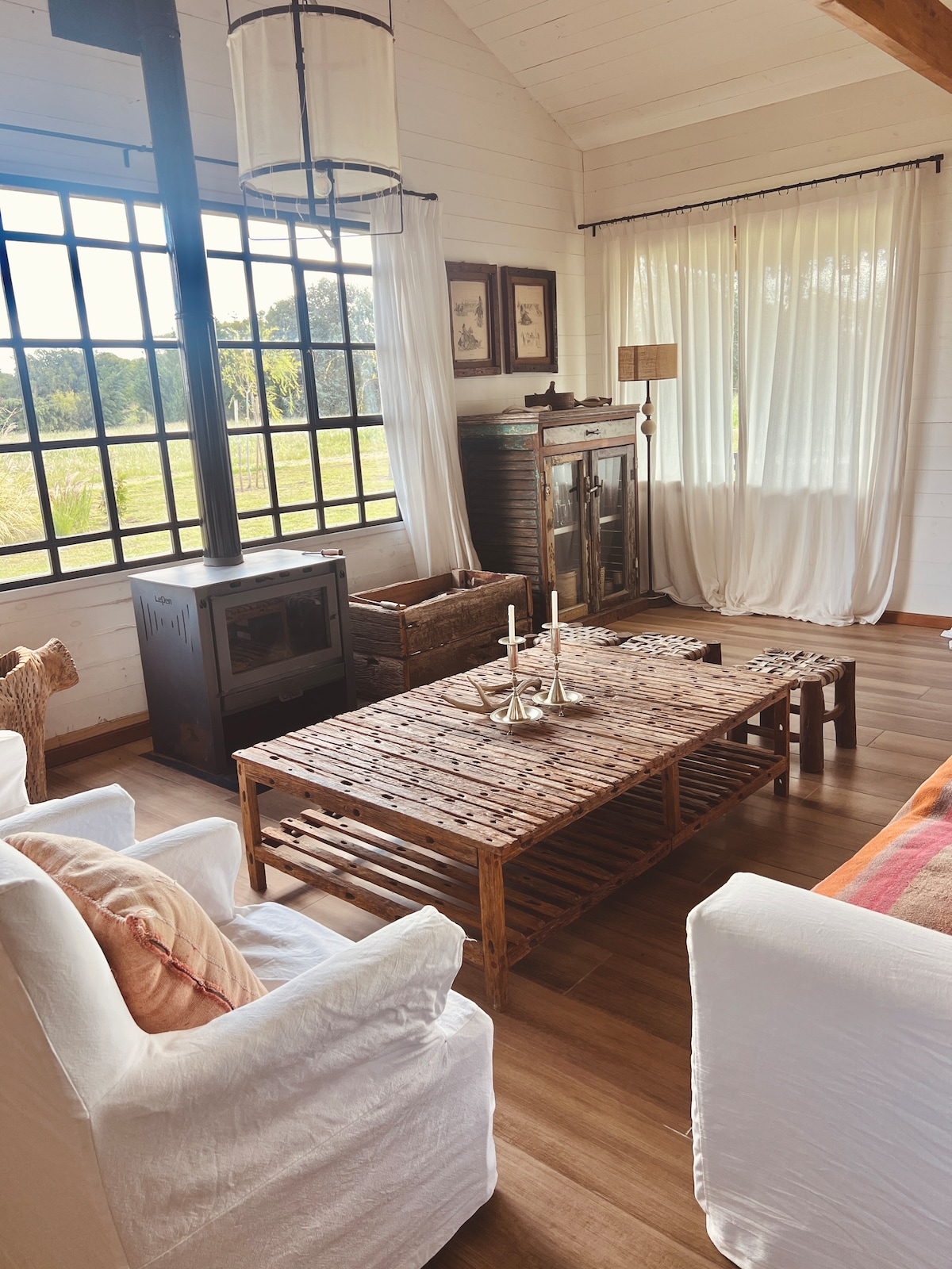 Esta en el campo sobre la ruta 47 y a solo 5 minutos del pueblo. Capacidad para 4 personas.. Una vista divina!!! Para descansar y conectar con el campo!! Calefacción con salamandra.. Ducha externa +reposeras Con la premisa de conservar la esencia del galpon y trascender su historia, convertimos un tambo en desuso en un puesto de campo lleno de luz y linda energía donde cada uno de los materiales utilizados son originales del campo y guardan un poquito de historia de sus propietarios!! 1