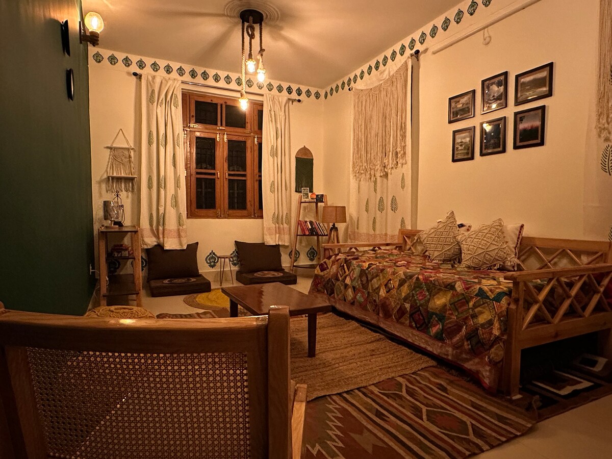 A cosy independent cottage nestled amidst farm fields, with the backdrop of the majestic Dhauladhar mountains and skies lined with colourful gliders. Our place is your perfect rejuvenating escape. Please note: There is a partly constructed building visible from the right side of the mudhouse (work is at halt) & our Jade cottage has been recently renovated. Pictures will be updated by 31st March post considerable completion of work.