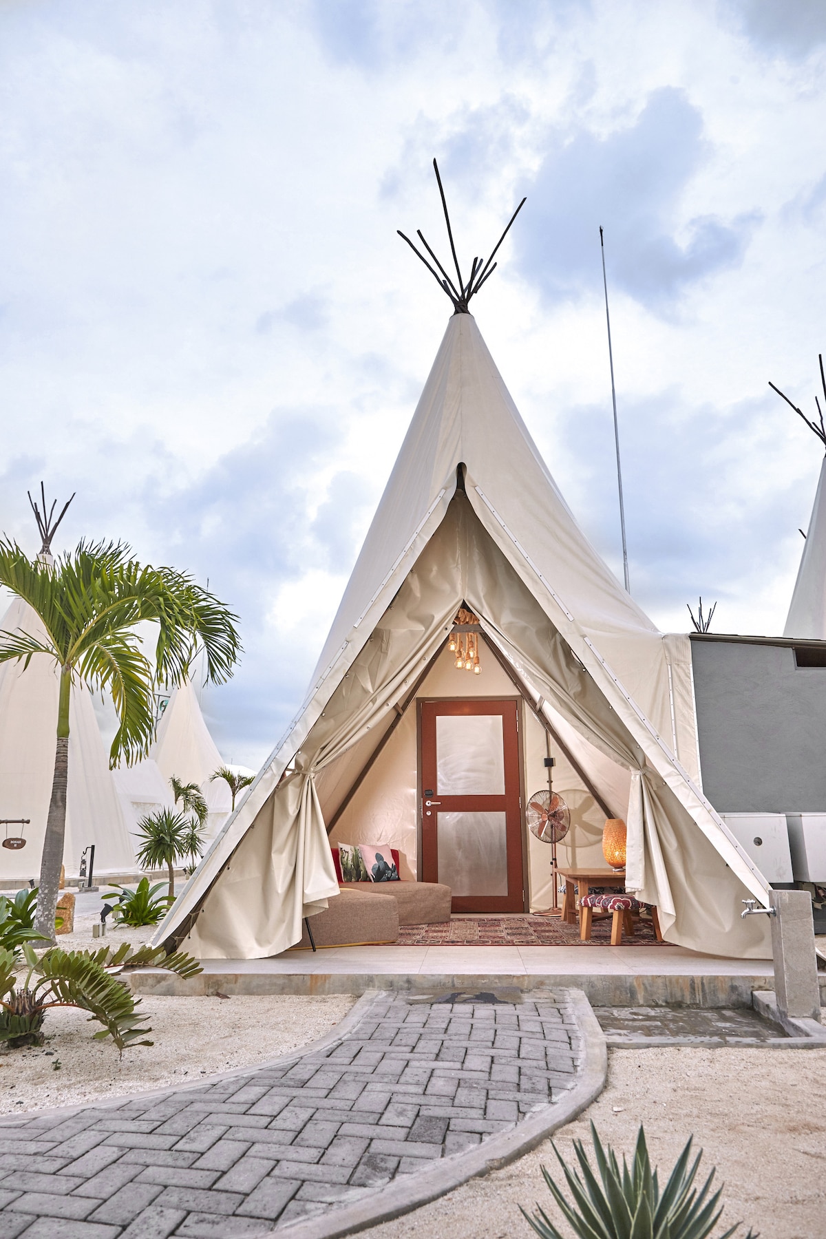 Enjoy the lovely setEscape to a romantic seaside glamping tent surrounded by nature. Enjoy the ocean breeze, cozy air-conditioned comfort, and peaceful nights under the stars — perfect for couples or families seeking a unique tropical getaway.ting of this romantic spot in nature.