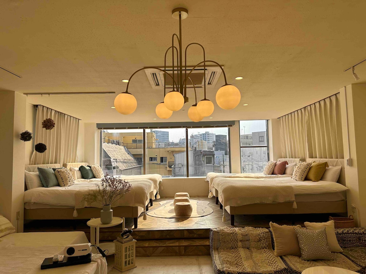 入住這間位處中心地段的房源,全家到哪都方便。 房內配置兩張加大雙人床,適合家人、朋友一同入住 床距舒適,動線保有獨立空間。最多可住5人 開放式廚房備有電磁爐、鍋具與碗盤,想吃家常菜、日式簡單料理都不是問題 吧台連接生活與用餐空間,不論是一杯早晨咖啡,還是一頓晚餐,一切都剛剛好。 洗手台與衛浴獨立設計,幾個人一起住也能保有自己的步調 提供藍芽音響,在日本的夜晚聽著音樂、泡個熱水澡是旅途中最放鬆的片刻。 房內備有投影機,可輕鬆連接常用的數位串流平台 洗衣機、空氣清淨機、熨斗與寬敞衣櫃一應俱全,你需要的,我們都準備好了 空間剛剛好,適合一個人靜靜地在吧台工作,也適合和朋友或家人一起住上幾天 自在相處,各自舒適。