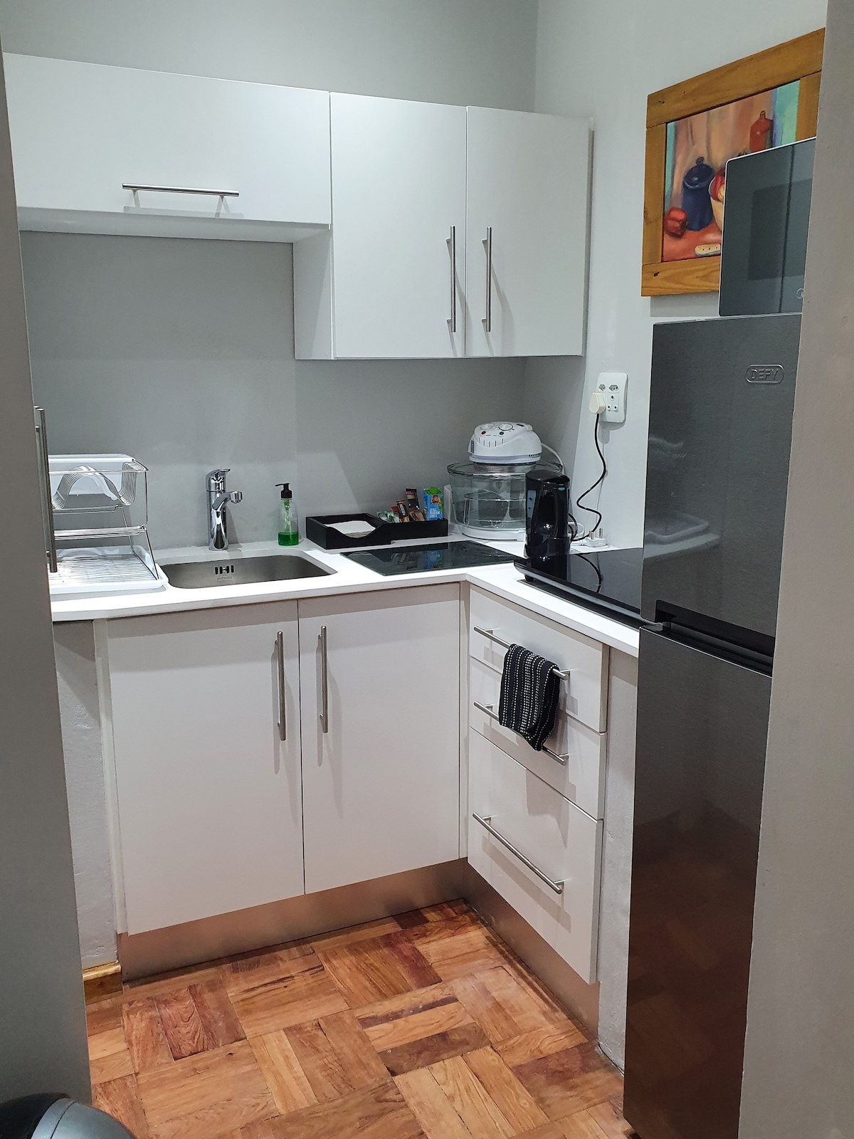 El Garden Place se encuentra en Summerstrand, en Port Elizabeth. Se encuentra a cinco minutos en coche del aeropuerto, la universidad, la playa y las instalaciones deportivas. Este moderno apartamento con jardín y cocina americana tiene capacidad para dos personas y cuenta con salón, cocina totalmente equipada con fogones, nevera/congelador, tostadora, hervidor de agua y una pequeña mesa de desayuno que conduce a un patio privado. La unidad tiene energía solar, agua de pozo de respaldo y wifi gratuito. Hay aparcamiento en las inmediaciones del apartamento.