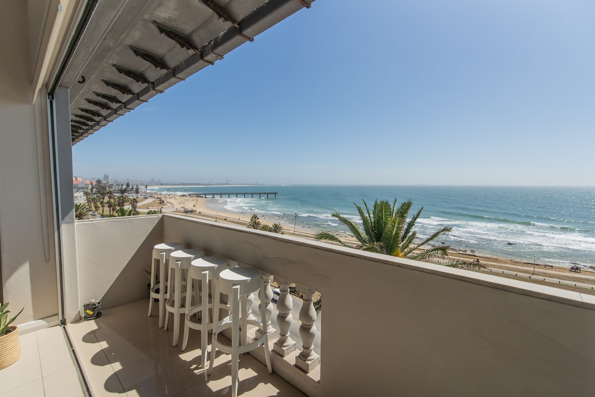 Situado en primera línea de playa de Port Elizabeth, nuestro estudio con cocina americana y gestionado por el propietario tiene unas bonitas vistas al mar y al valle. Equipado con todas las comodidades que necesitarás para tu estancia, incluidos artículos de aseo, ropa de cama de algodón blanco y toallas de baño, así como cafetera y tetera. Camina a través de la puerta de acceso peatonal hasta las playas de bandera azul, tiendas, restaurantes, bares y el complejo del casino del paseo marítimo. Piscina comunitaria e instalaciones de braai con vistas a la bahía de Algoa. Aparcamiento seguro gratuito con seguridad las 24 horas.