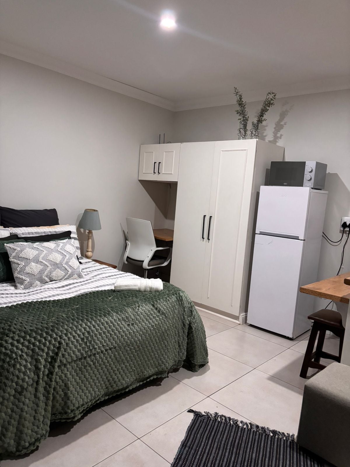 A spacious, modern, fully furnished, one bedroom, apartment, private entrance, up a flight of stairs. Ideally situated close to leading schools, hospitals, restaurants, malls, a short drive to stunning beaches. The 3.2m x 2.3m corner sofa can comfortably sleep an older child. For young children a mattress can be laid on the floor. There's a flat screen TV with Netflix & great Wi-Fi! Only registered guests may make use of the apartment. The pool is unfortunately for private use only.