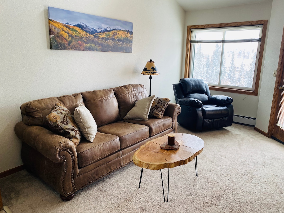 ¿Estás deseando hacer tu visita de verano o tu viaje de esquí de invierno? Ven a alojarte a nuestro loft de Breck. ¡Camina hasta el telesilla Quicksilver o la ciudad! Totalmente renovado, hazte una foto digna de Instagram en nuestro auténtico banco de telesilla. El apartamento está en el último piso del edificio y tiene vistas a la bañera de hidromasaje/piscina desde el balcón, y cuenta con vistas a las montañas desde el dormitorio elevado. Este loft tiene capacidad para 4 personas; 2 en el loft y 2 en el sofá cama de Room & Board. ¡Una cocina completa para comidas fáciles o un paseo a los restaurantes de Main St!