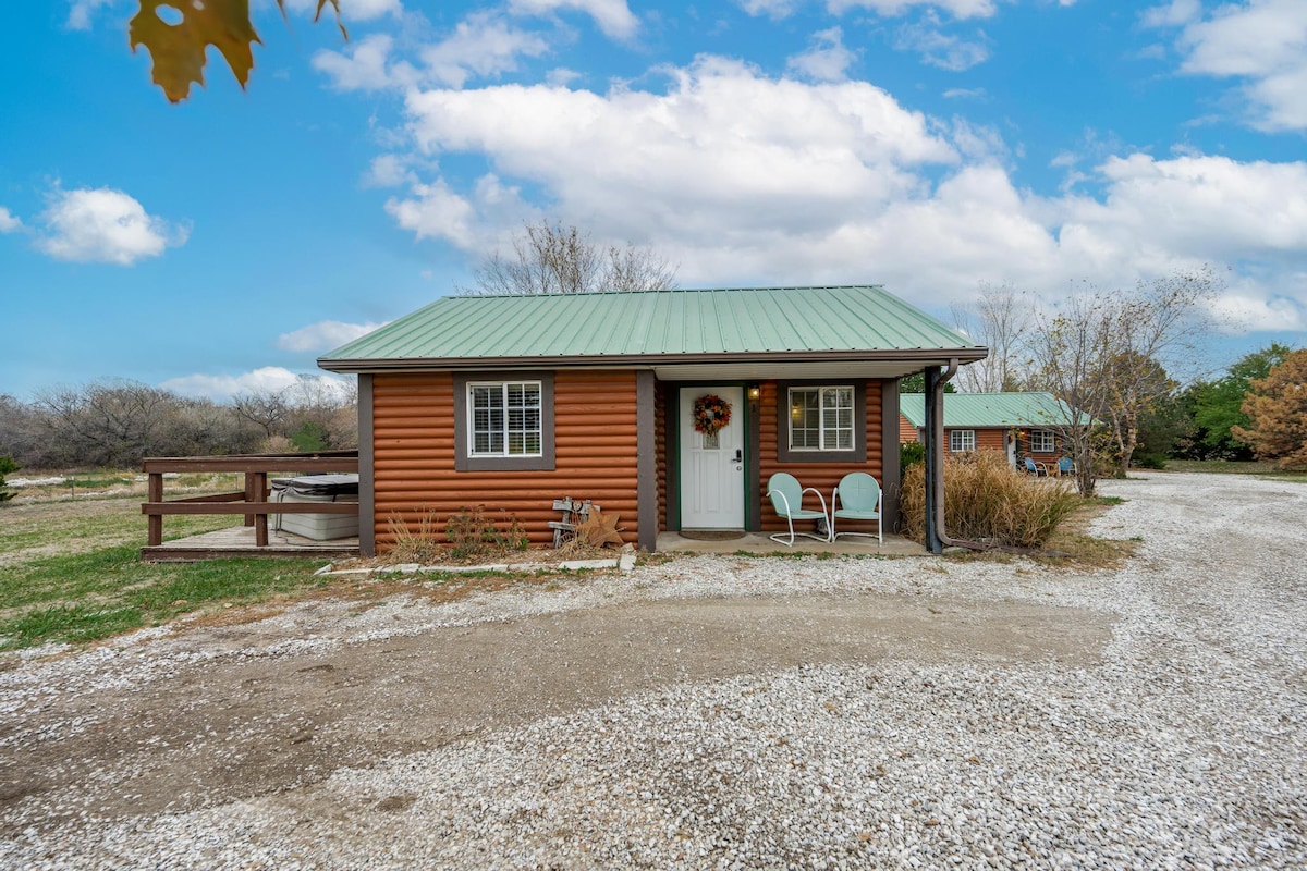 Alójate en una de nuestras 3 cabañas, cada una equipada con su propio jacuzzi para 2 personas en la terraza trasera para que disfrutes bajo las estrellas. El desayuno está incluido en la estancia. Cada cabaña ofrece una cama tamaño queen, mininevera, microondas, cafetera, chimenea de gas con termostato, aire acondicionado, ducha, televisión por cable y reproductor de DVD. Todo eso situado en más de 13 hermosos acres con un estanque y senderos para caminar por el bosque. A 15 minutos del Kansas Star Casino y a 10 minutos en coche de Derby con servicios de la ciudad.