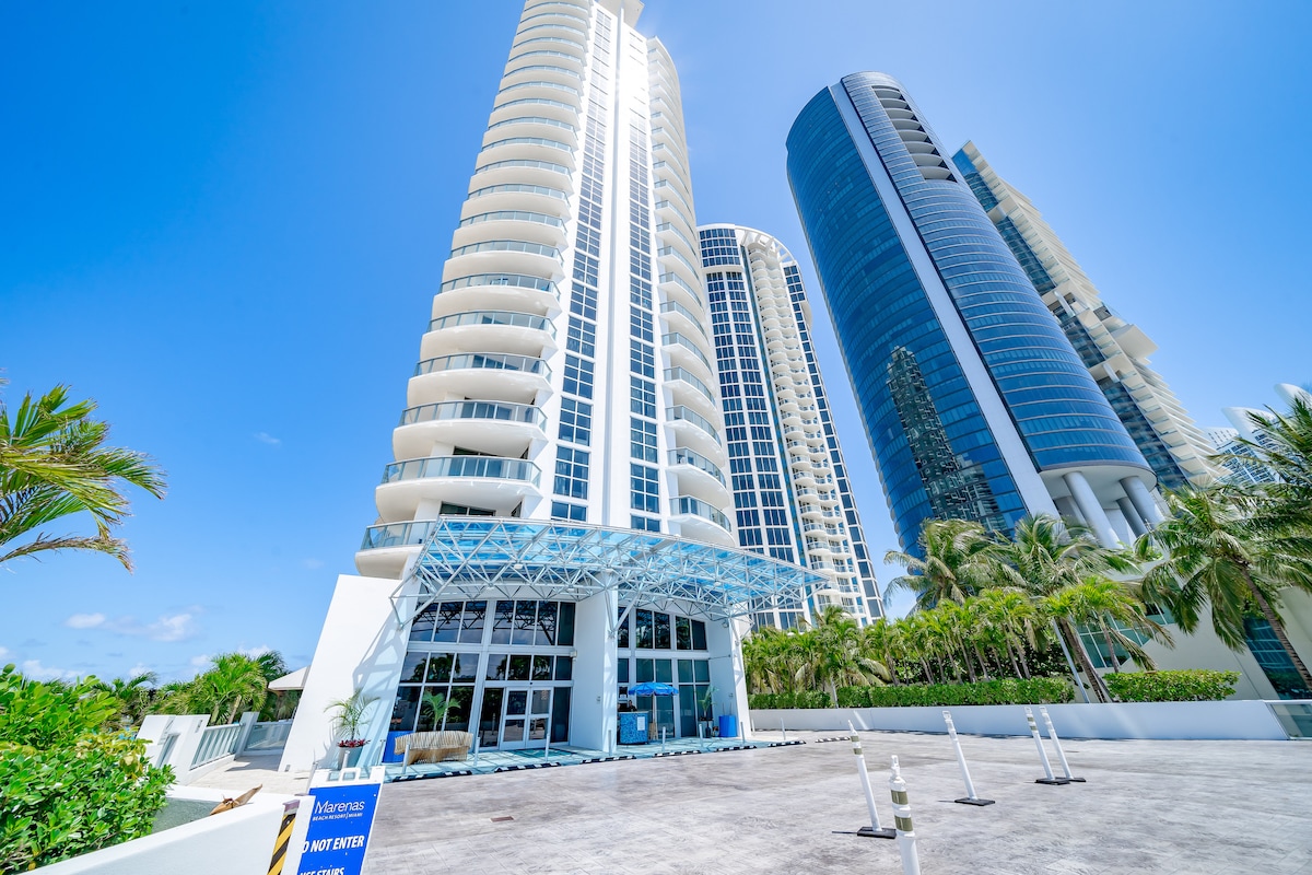 APARTAMENTO PRIVADO de 9 pisos en el Marenas Beach Resort de 4 estrellas en Sunny Isles. ¡Estarás justo en el océano con acceso directo a la playa! A 5 minutos en coche del centro comercial Aventura y a pie de supermercados, restaurantes y tiendas. LAS TARIFAS ADICIONALES deben pagarse en el registro de entrada al hotel: Resort & Hotel Service: 38,25 USD/día (por habitación ): incluye toallas de piscina/playa, sillas y sombrillas. Estacionamiento: US$ 35/día (opcional) Total: US$ 68.25/día más 14 días sin cargo No hay ninguna construcción al lado.