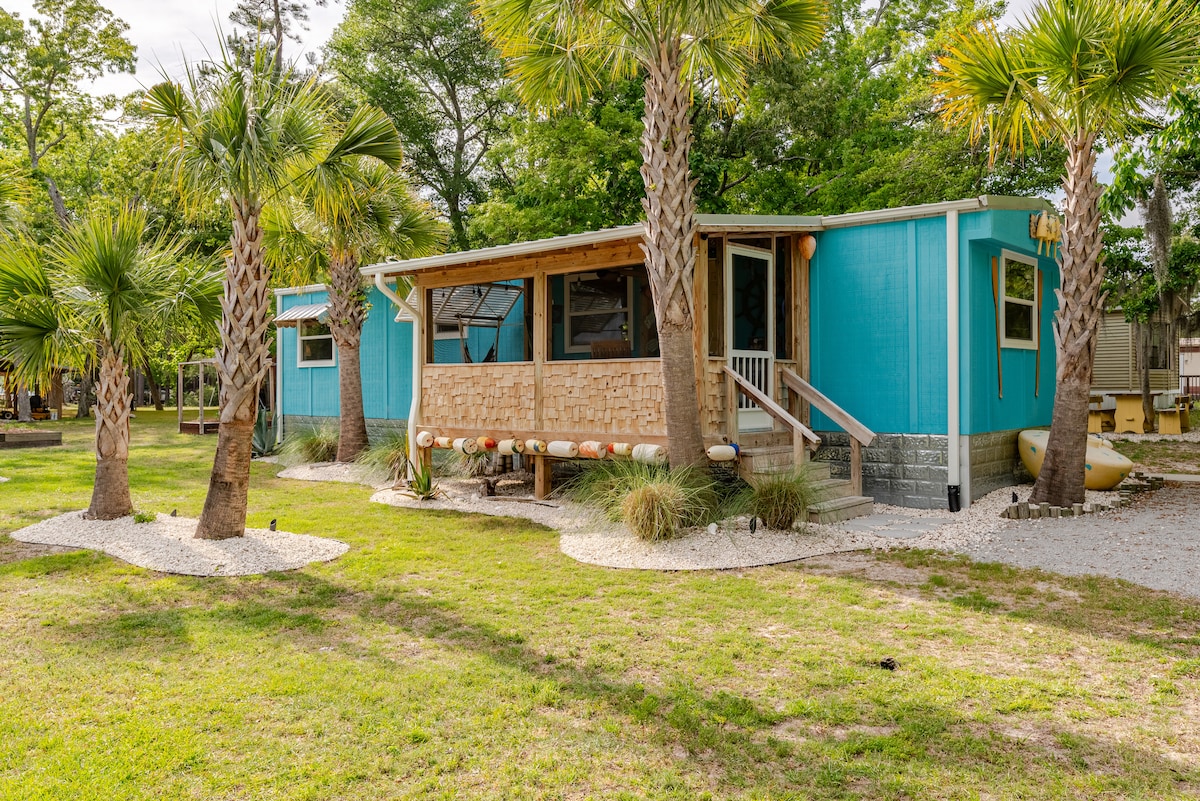 Remolque pintoresco y acogedor con temática náutica. Con un patio vallado para tus compañeros K-9, a solo cinco minutos de las hermosas playas de Sunset y Ocean Isle. Disfruta de dos dormitorios privados, cocina completa, TV por cable y conexión wifi. Este alojamiento ofrece dos baños completos en el interior y una ducha al aire libre para enjuagarse después de un día de playa. El porche delantero con mosquitero albergará cómodamente a tu familia y amigos, y disfruta de un cómodo ambiente de playa de Carolina del Norte.