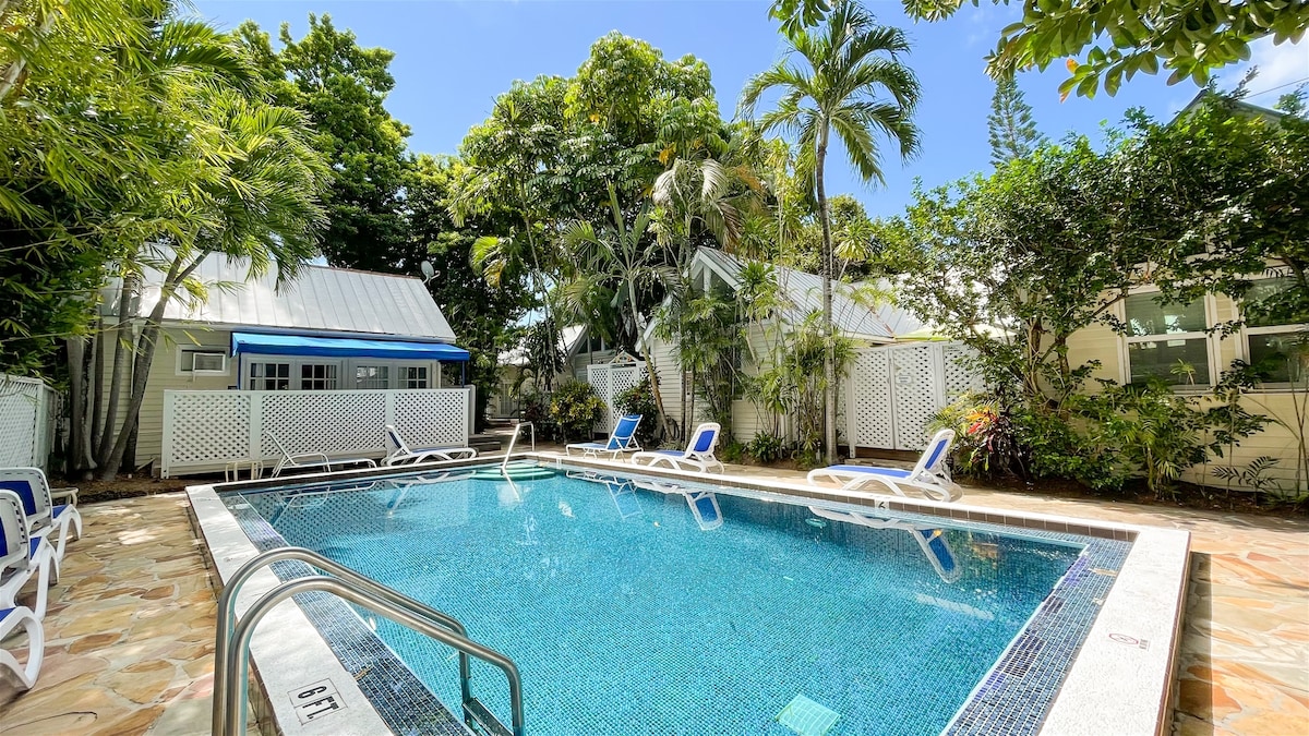 28-night minimum stay rental. Located in a neighborhood 3 blocks from Duval & a short walk or bike ride to Higgs Beach, Southernmost, bakeries, galleries, & Cuban coffee. Cottage has a fenced yard, pool, & two covered porches overlooking the front & back gardens. Our home is on the ground floor of the house. Our full-time tenant lives in a detached studio, accessed by a side entrance & stairs at the rear of the property. Airbnb guests have exclusive use of porches, pool, & deck.