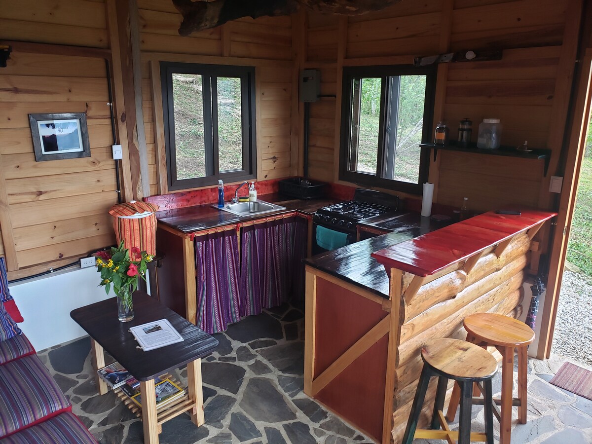 Este lugar tranquilo ofrece un entorno de naturaleza y familiar, para tener una experiencia de una cabaña en el campo y disfrutar de noches de fogata, la propiedad cuenta con parqueo privado. La propiedad cuenta con 03 cabañas, el entorno es compartido, las cabañas están separadas. Del parqueo a la cabaña se caminan aproximadamente 25 metros, el camino es un poco inclinado.