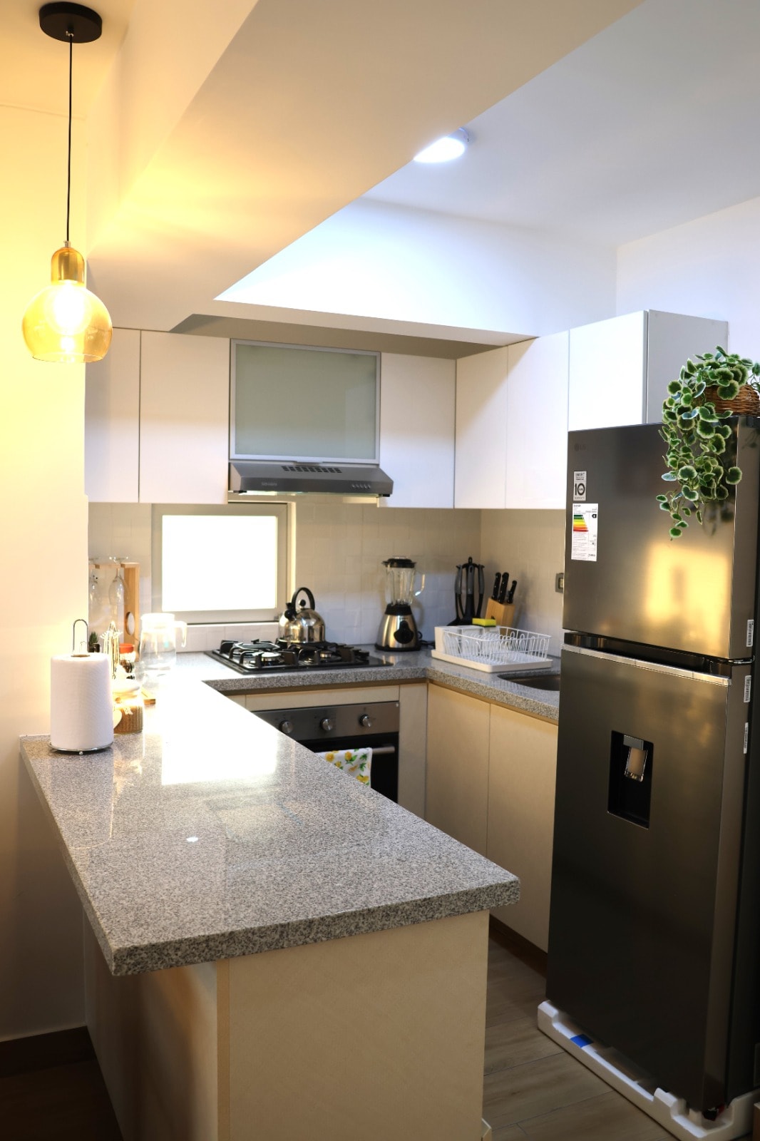 Moderno y acogedor apartamento nuevo de una habitación, totalmente amueblado y con Internet de alta velocidad 5G. Sus grandes ventanales proporcionan iluminación natural y también tiene un pequeño balcón. El edificio cuenta con seguridad las 24 horas y áreas comunes como una terraza con parrillas para barbacoa, un gimnasio, un lavadero y un espacio de coworking, todo disponible para los huéspedes. Se ubica en la avenida Higuereta: un área céntrica, segura y conectada con paradas de transporte público. A 7 cuadras del conocido Centro Comercial Chacarilla.