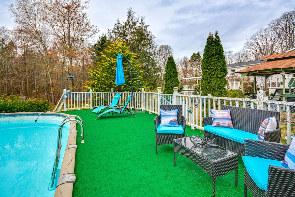 ¡Ubicado dentro de las montañas Blue Ridge y situado a lo largo del río Yadkin se encuentra este elegante alojamiento de alquiler de vacaciones de 3 dormitorios y 2 baños! Pasa tus días chapoteando en la piscina o compitiendo en un partido de ping pong antes de encender la parrilla y disfrutar de una deliciosa comida al aire libre. Luego, sal a conectar con la naturaleza explorando el parque estatal de Stone Mountain. Regresa a casa para relajarte junto a la hoguera y comer s'mores con tus seres queridos. ¡Termina la noche en el jacuzzi, relajándote bajo las estrellas!