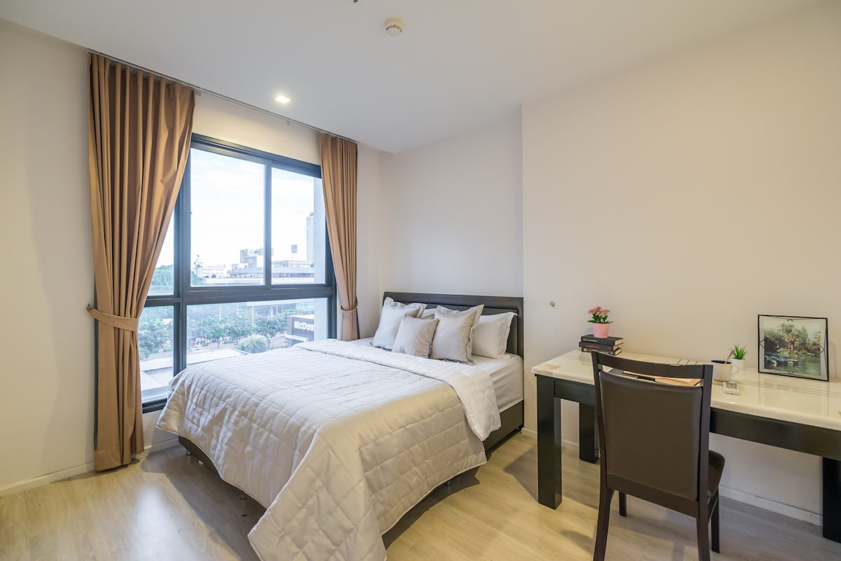 R1/Habitación elegante y acogedora en la gran ciudad@Ratchada/a pie del tren