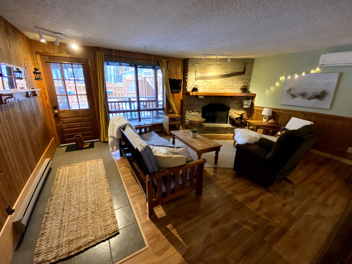 CITQ #306547 Turismo Quebec Acogedor y privado loft en Mont Sutton, rodeado de árboles, en una zona muy tranquila y silenciosa, pero a 2 minutos de la estación de esquí y ciclismo de montaña, así como de las rutas de senderismo P.E.N.S. (Parque de Entorno Natural de Sutton). El sendero Round Top conduce a la cumbre con una vista fabulosa de la región y un excelente panorama de Jay Peak y las «Montañas Verdes de Vermont».