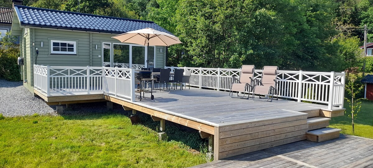 Attefallhus de nueva construcción en tranquilo y cerca de la naturaleza Svanvik Hagen, cerca de Varekil en Orust, en la costa oeste de Suecia. Aquí hay hermosas vistas y proximidad a la naturaleza. A 10 minutos a pie se puede llegar al mar Stigfjord y a una reserva natural, perfecta para relajarse y explorar la naturaleza. Aquí encontrarás un hermoso edificio principal y un Attefallshus, ambos rodeados de jardín y un gran patio con terrazas.