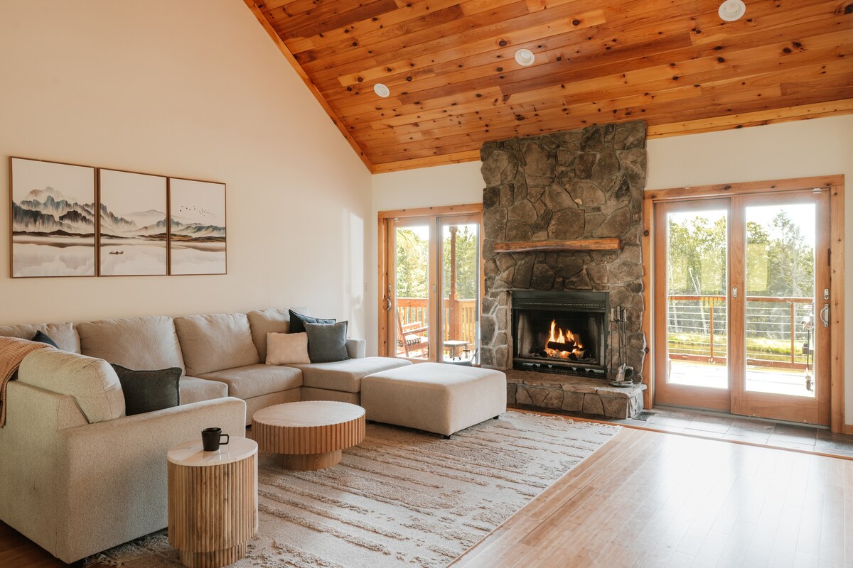 Cabaña de nueva construcción junto al río con vistas a 600 pies de orilla privada justo en el borde de Livingston Manor. Los techos altos de la cabaña y los grandes ventanales crean un espacio lleno de luz y grandes vistas al río Willowemoc: pasea por la orilla para pescar con mosca uno de los ríos más famosos de la zona o simplemente disfruta mirando desde tu propia terraza privada. Después de la puesta de sol, disfruta de la chimenea al aire libre o de la chimenea cubierta de piedra, o cocina un banquete desde la cocina del chef.