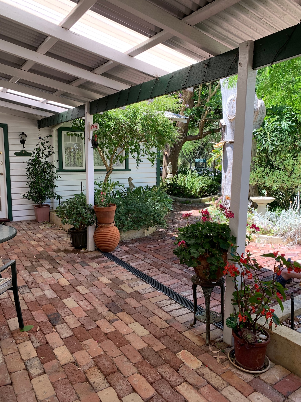 Despierta en un oasis tropical con vistas a los exuberantes jardines y al estanque con desayuno continental orgánico de cortesía. Relájate o diviértete bajo los árboles y las luces de hadas con horno de leña para pizzas, bar, cocina y barbacoa para las mejores vacaciones en Freo. Un refugio para la conciencia plena o la playa. Pedalea hasta South Beach en las bicicletas de la casa, los mercados de agricultores o explora Fremantle a 5 minutos en auto. Parques opuestos, áreas de ejercicio para perros, tazones de césped y parque infantil nuevo. Se admiten mascotas y bubs.