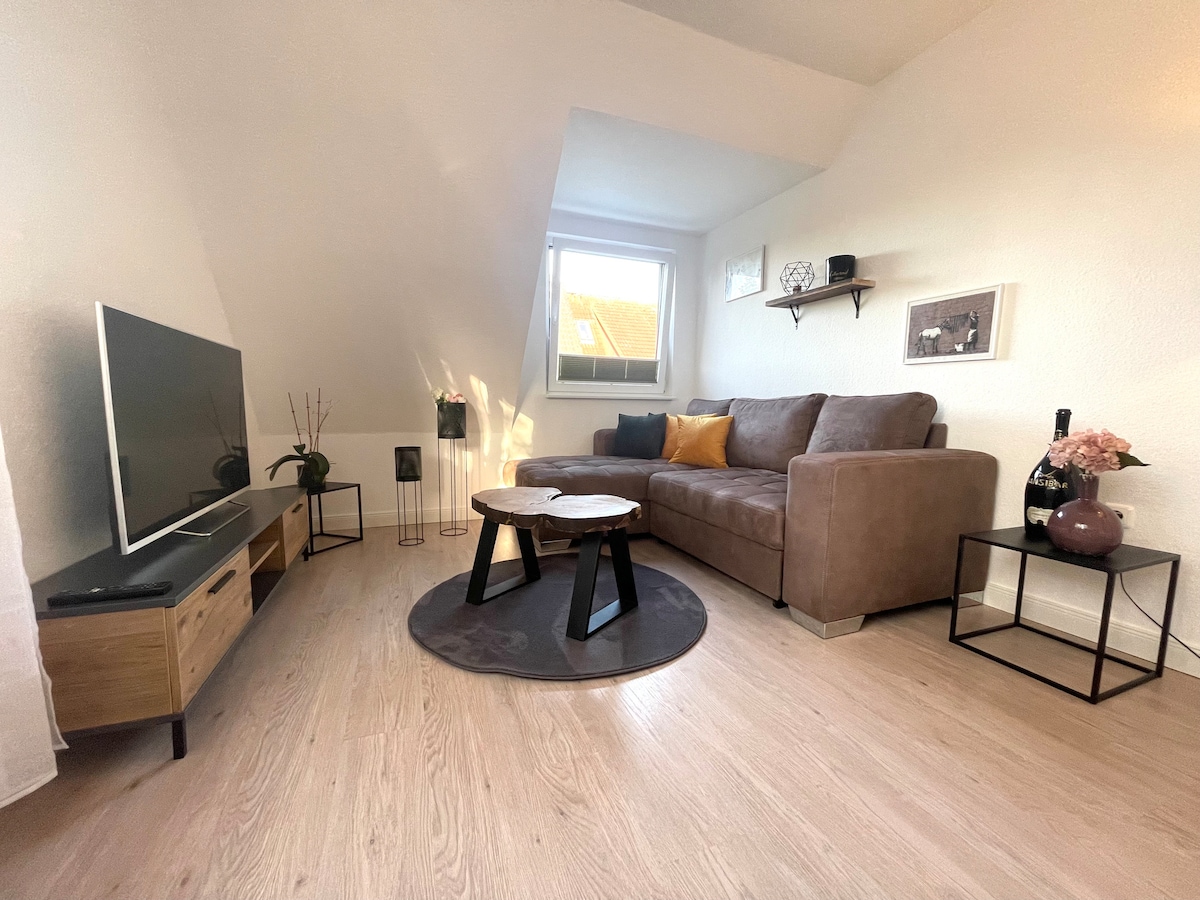 Unsere gemütliche, sehr helle ca. 70 m² große Erdgeschosswohnung mit Einzelhauscharakter bietet euch einen ca. 40 m² großen Wohn-/Essbereich mit offener Küche, Essecke und Kamin, ein Büroraum, ein Duschbad mit ebenerdiger Dusche, ein separates Schlafzimmer, eine große, überdachte Terrasse mit Sauna & Whirlpool & eingewachsenen Garten. Strand, Innenstadt und Bahnhof sind zu Fuß in ca. 10-15 Minuten zu erreichen, der nächste Supermarkt in direkter Nähe. Hunde sind bei uns herzlich willkommen!