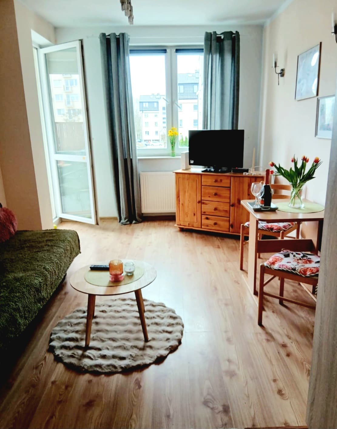 Oferujemy Państwu w pełni wyposażony apartament typu studio, z kuchnią i łazienką. Apartment znajduje się w centrum miasta, tuż przy Polo Market. Pod oknem znajduje się ogólnodostępny parking. W salonie znajduje się dwuosobowa rozkładana kanapa, stolik, TV, klimatyzator oraz Wi-Fi. W kuchni do dyspozycji gości jest lodówka, kuchenka, piekarnik, zmywarka oraz pełne wyposażenie kuchenne. W łazience znajduje się kabina prysznicowa, pralka oraz suszarka. Zapraszamy do naszego Apartamentu.