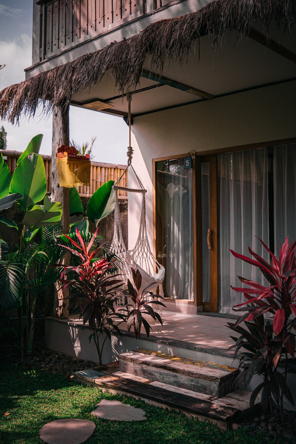Casa Aliran es una tranquila estancia boutique escondida junto a un río suave en la exuberante parte de Canggu. Rodeadas de vegetación, pero a solo unos minutos de vibrantes cafés y restaurantes, nuestras cuatro habitaciones cuidadosamente diseñadas, y una quinta oculta, combinan texturas tropicales con tonos tranquilos y terrosos. Aquí no se oye el tráfico. Escucharás el canto de los pájaros, el susurro de las hojas y el zumbido silencioso del corazón verde de Bali. Disfruta de un check-in autónomo, naturaleza ininterrumpida y un espacio diseñado para la paz, el descanso y la reconexión.