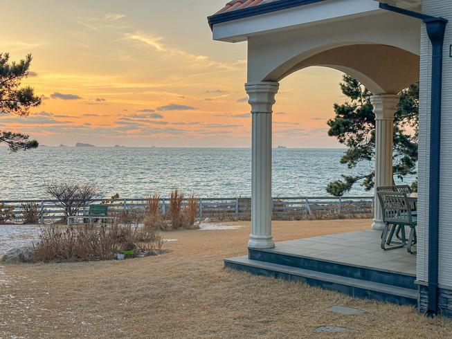 스테이코스트 2층 독채 펜션인 [코스트2] 는 침실, 거실, 욕실2, 다이닝룸으로 구성되어있고, 어디서든 바다가 바로 눈 앞에 펼쳐지는 아름다운 공간입니다. 드넓은 잔디밭과 프라이빗한 바다 앞에 있어 매우 평화롭고, 낭만적인 힐링 여행을 하시는 분들에게 추천합니다. 2층으로 올라가는 전용 입구가 있어 프라이빗하게 사용 가능합니다. 주방에서는 밀키트나 간단히 데워 드시는 정도만 가능하세요 칼도마는 준비돼 있지 않습니다 매운탕 생선요리 불가능