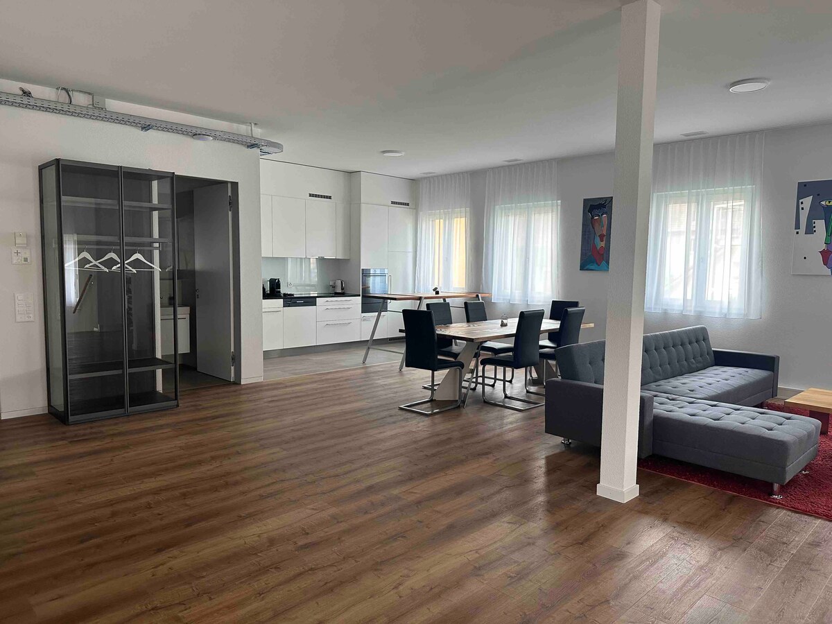 The apartment is very modern & well-equipped. There are two bedrooms (1 with an en-suite bathroom) and a separate bathroom. The apartment has a large, open kitchen as well as a dining and living area. The lounge on the terrace invites you to linger. This apartment is perfectly located for Baden, Zurich, or other excursions. The highway is 3 minutes away by car and the bus stop is a 2-minute walk away. Zurich can be reached in 30 minutes by public transport.