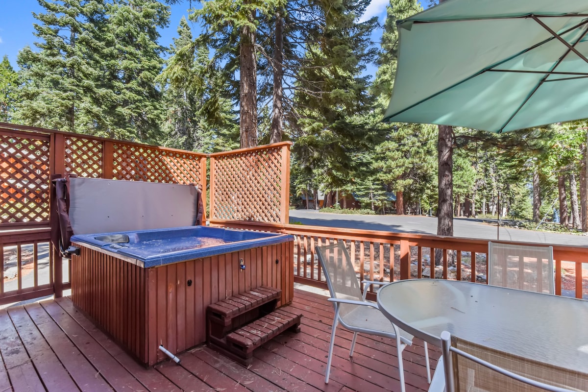 La Casa Tahoe es una casa de montaña de más de 1400 pies cuadrados con 3 dormitorios y 2 baños, un garaje para 1 coche y un jacuzzi privado, ¡convenientemente ubicada muy cerca de todo lo que el lago Tahoe tiene para ofrecer! Pasa el día en las pistas y luego vuelve para darte un baño en el jacuzzi, con cómodas batas blancas de spa. Pasa la noche preparando la cena en la cocina bien equipada o relájate y juega a juegos de mesa en la sala de estar alrededor de la chimenea de gas. ¡Disfruta del lago Tahoe viviendo al máximo!