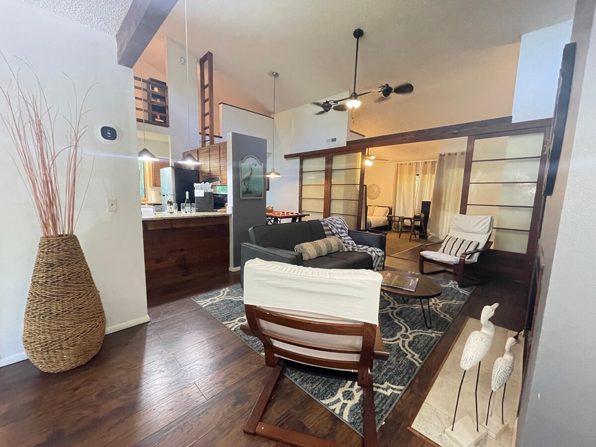 Zen... es lo que viene a la mente con este apartamento de inspiración japonesa ubicado en el hoyo 13 de un campo de golf. El balcón del segundo piso es ideal para relajarse y ver a los golfistas o simplemente disfrutar de las vistas del lago. Disfruta eligiendo entre 2 suites principales o el loft para los huéspedes más aventureros con acceso a escalera. Tendrás acceso a una cocina totalmente equipada y a sábanas blancas frescas y artículos de baño básicos. Hay wifi disponible para los huéspedes. Aparcamiento gratuito para 2 plazas y en la carretera.