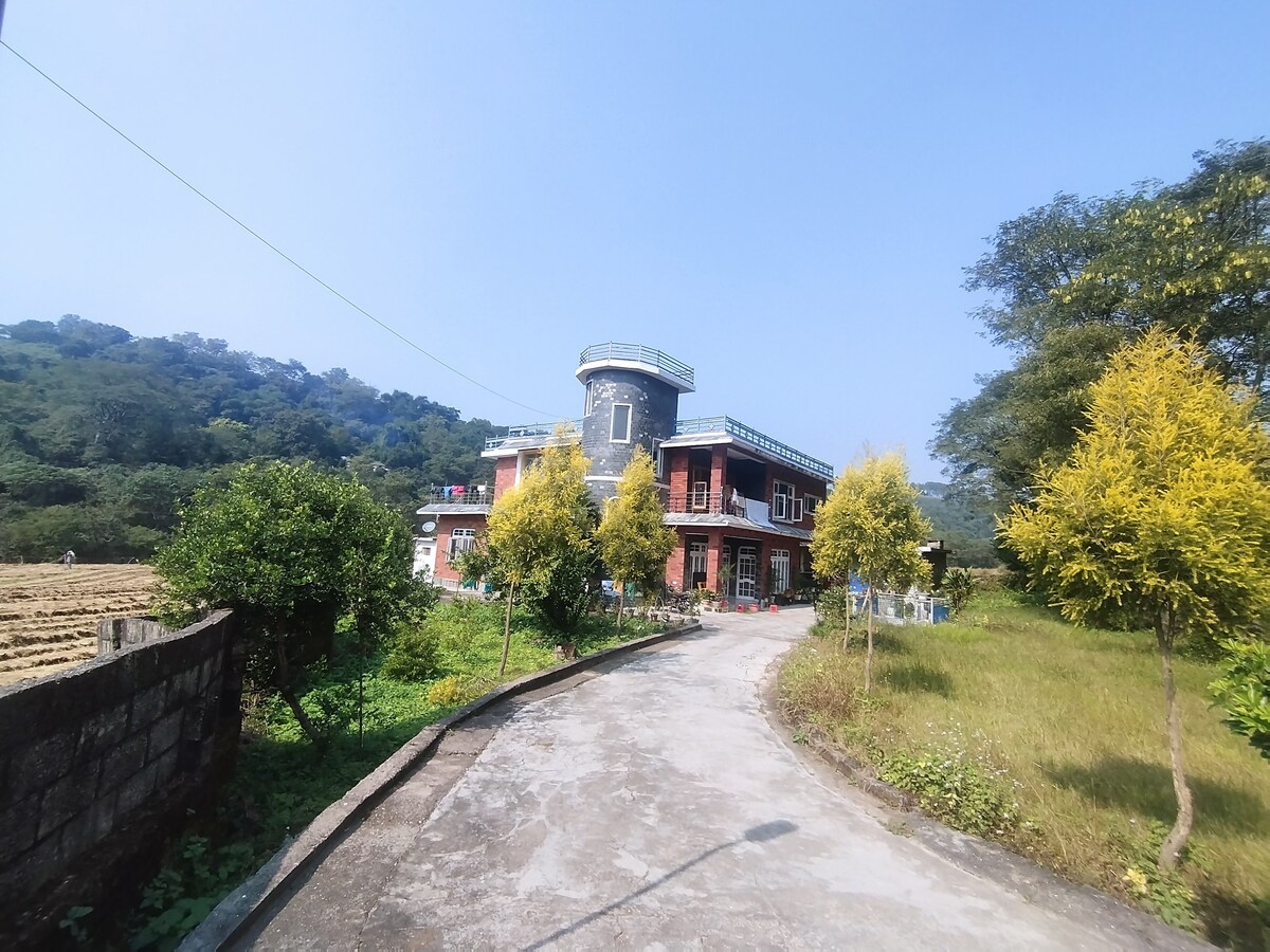 Set within beautiful landscaped garden the property features a spacious, elegant home overlooking a peaceful lawn The highlight of the space is the thoughtfully designed outdoor seating area natural stone seating arranged around a central feature perfect for morning chai evening conversations, or simply soaking in the calm. Step outside and you’ll find a rustic outhouse, adding a unique, earthy charm to your stay great for quiet moments, creative work, or just enjoying the slow pace of hill life