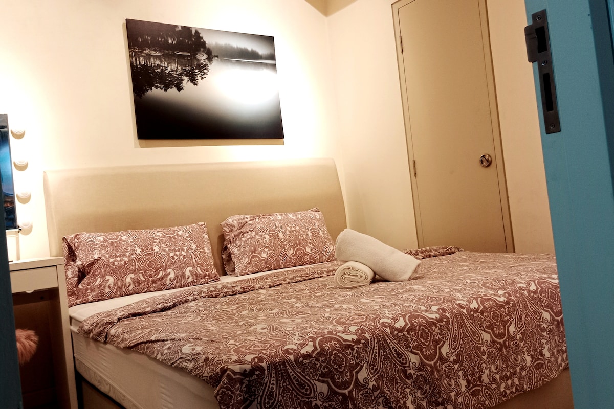 * SANITIZED AFTER EVERY GUEST* This is a NEW fully-furnished one bedroom apartment, perfect for couples and travelers that are looking for a quick getaway from city life. We provide high-speed WiFi complete with Smart Android TV and NETFLIX for you to binge on your favourite shows and movies. Not to forget, our amenities include world-class fully-equipped GYM, Horizon Pool, Sauna, Mini Golf Range, Sky Garden, BBQ area and many other top and new facilities all available for your memorable stay
