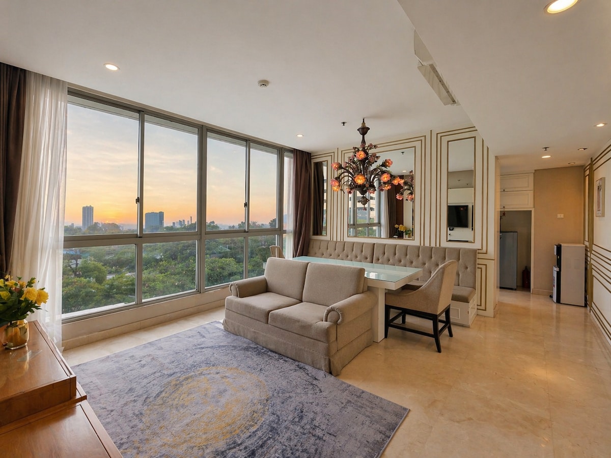 Experimenta lo mejor de la vida urbana en nuestro elegante y cómodo apartamento, en este moderno espacio cuenta con una acogedora cocina de 3 dormitorios, totalmente equipada y una cómoda sala de estar perfecta para relajarse con aperitivos y bebidas adicionales. También cuenta con transporte multimodo Transjakarta (0 km), LRT (2 km), KRL (400 m), autobús (400 m) y equipo de ejercicio como piscina, parque acuático, cancha de fútbol sala y baloncesto. También cuenta con el centro comercial Transpark Mall, XXI, Snow World, que se encuentra a solo 5 pasos del edificio.