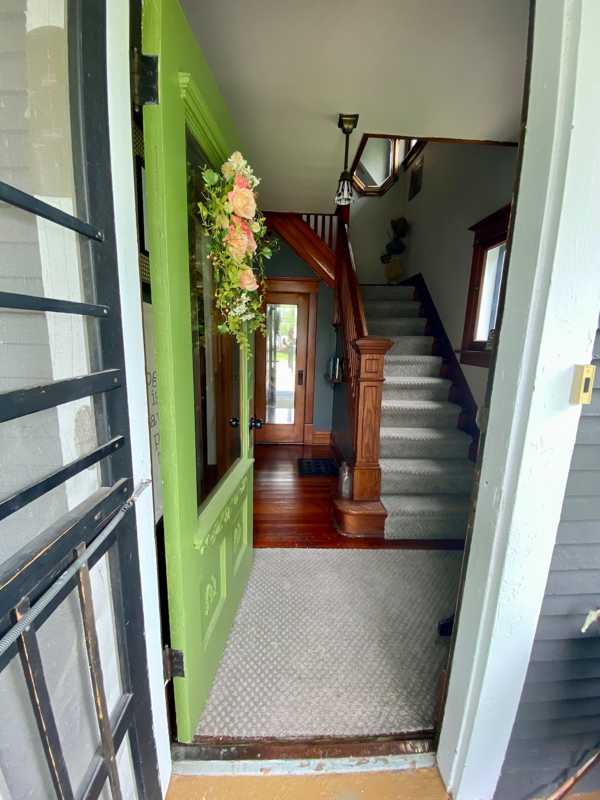 Preciosa casa de campo de 2 dormitorios ubicada frente al parque. Recién decorada con cocina de estilo rural totalmente equipada. El dormitorio principal tiene una cama tamaño queen ajustable, mientras que el segundo dormitorio tiene 2 camas individuales. La casa es ideal para una familia, dos parejas o un fin de semana de chicas en Historic Bishop Hill o destinos como Psycho Silo, Goods Furniture o Horse Shoes en Blackhawk College East.