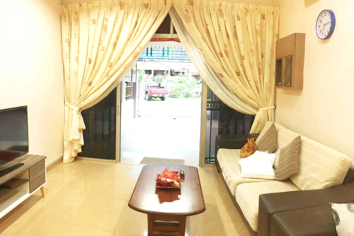 Modern English Concept with Peaceful vibes. Fully air-conditioned 4 bedroom 3 bathrooms with water heater Extra mattress and pillows Facilities: • Wifi provided • Android TV with Astro Channel, Sport, Netflix • Stove, Refrigerator, Water dispenser • Outdoor CCTV Important rule: Pet,pork and alcohol are STRICTLY PROHIBITED