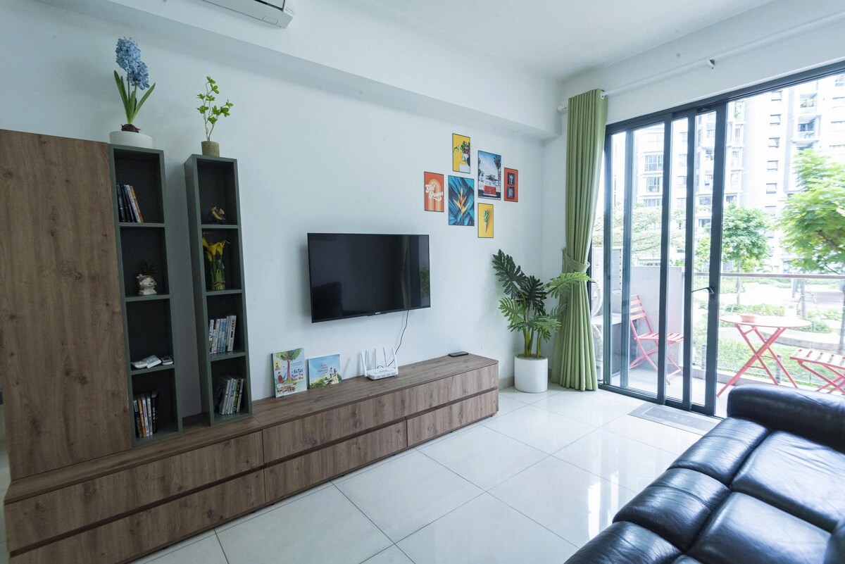 🌿 Disfruta de un resort en la ciudad de Ho Chi Minh con un apartamento de 2 dormitorios, 2 baños, 2 balcones totalmente amueblados y cocina privada, con horno, secado de ropa, etc. Piscina infinita, jacuzzi, gimnasio, sauna, pista de jogging y estación de observación en la 5ª planta, todo gratuito. Starbucks, Highlands, restaurantes y animada calle peatonal justo abajo. Espacio verde para bosques y lagos ecológicos, adecuado para relajarse, correr, montar en bicicleta. Un lugar raro y tranquilo como un resort en medio de la ciudad. A solo 15 minutos del aeropuerto. A 30 minutos del centro