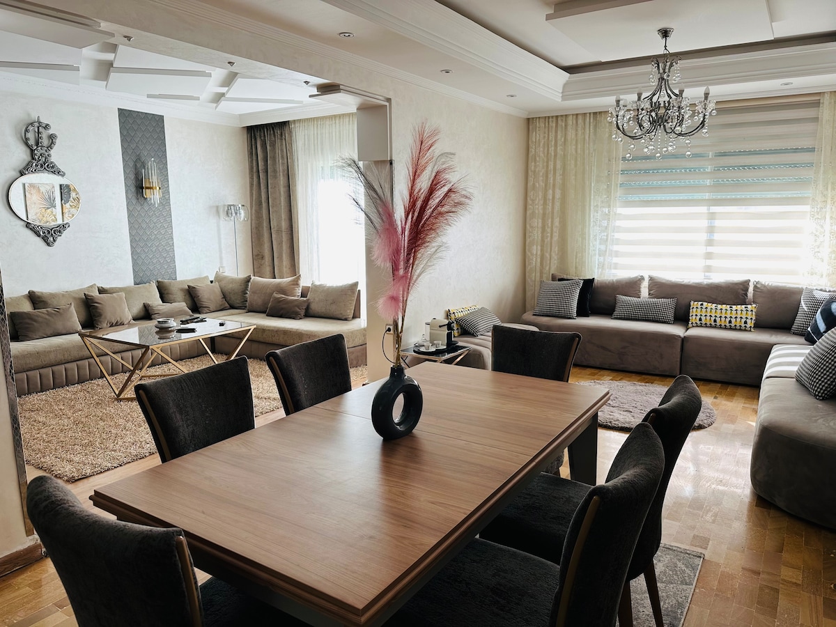Welcome to our charming 3-bedroom apartment nestled in the vibrant heart of Tangier's hyper center. All necessary amenities are available: Air-conditioning, Smart Tv, Netflix, fiber-optic internet connection, coffee machine, towels, shower amenities, etc Located on the last floor of the building with elevator access, you are just a few stairs away to access the incredible rooftop and admire breathtaking views of Tangier, Spain, the straits of Gibraltar and the mountains of Chefchaouen.